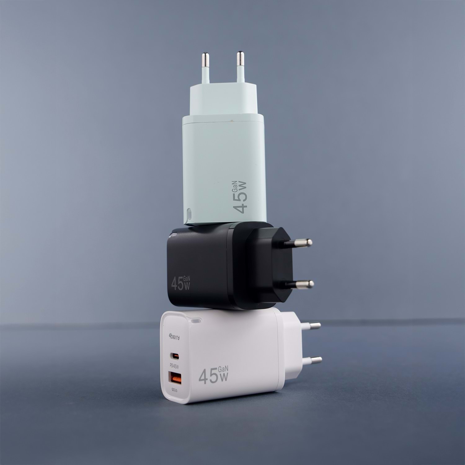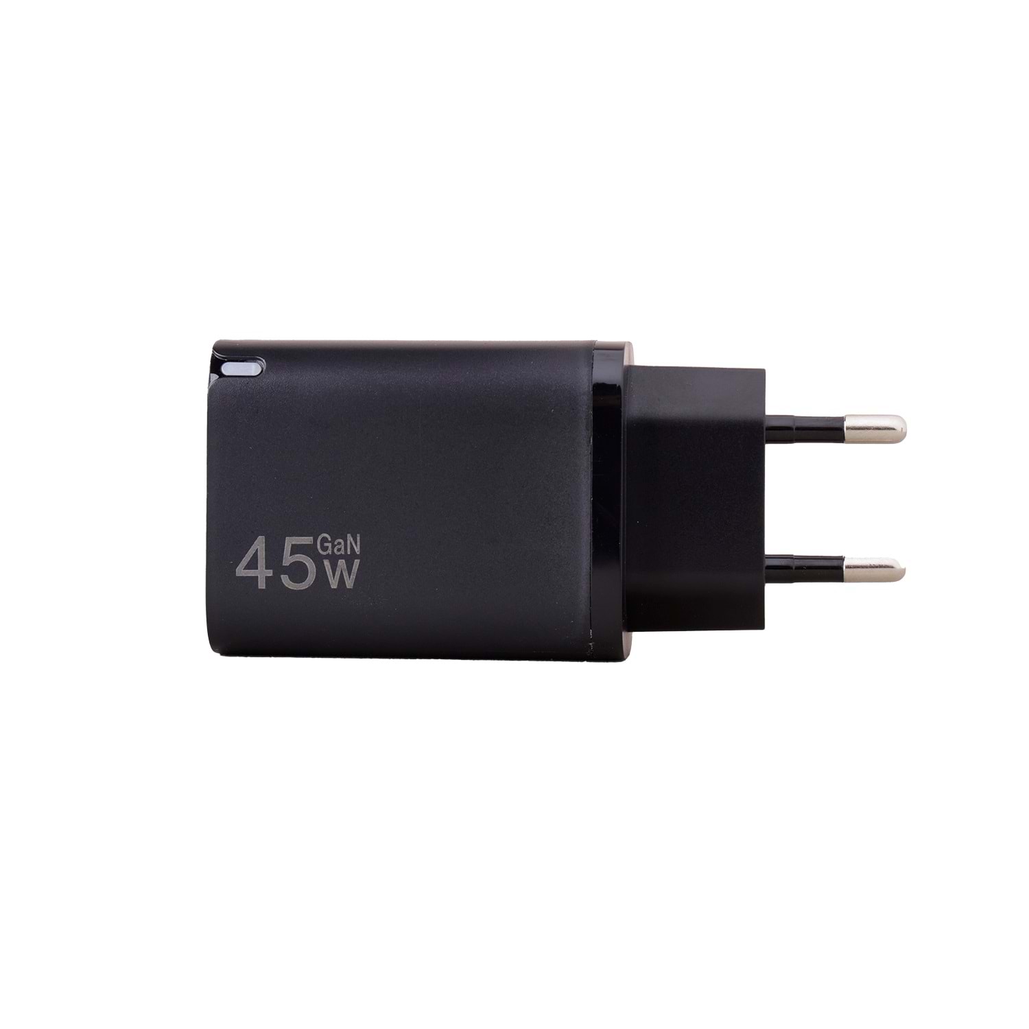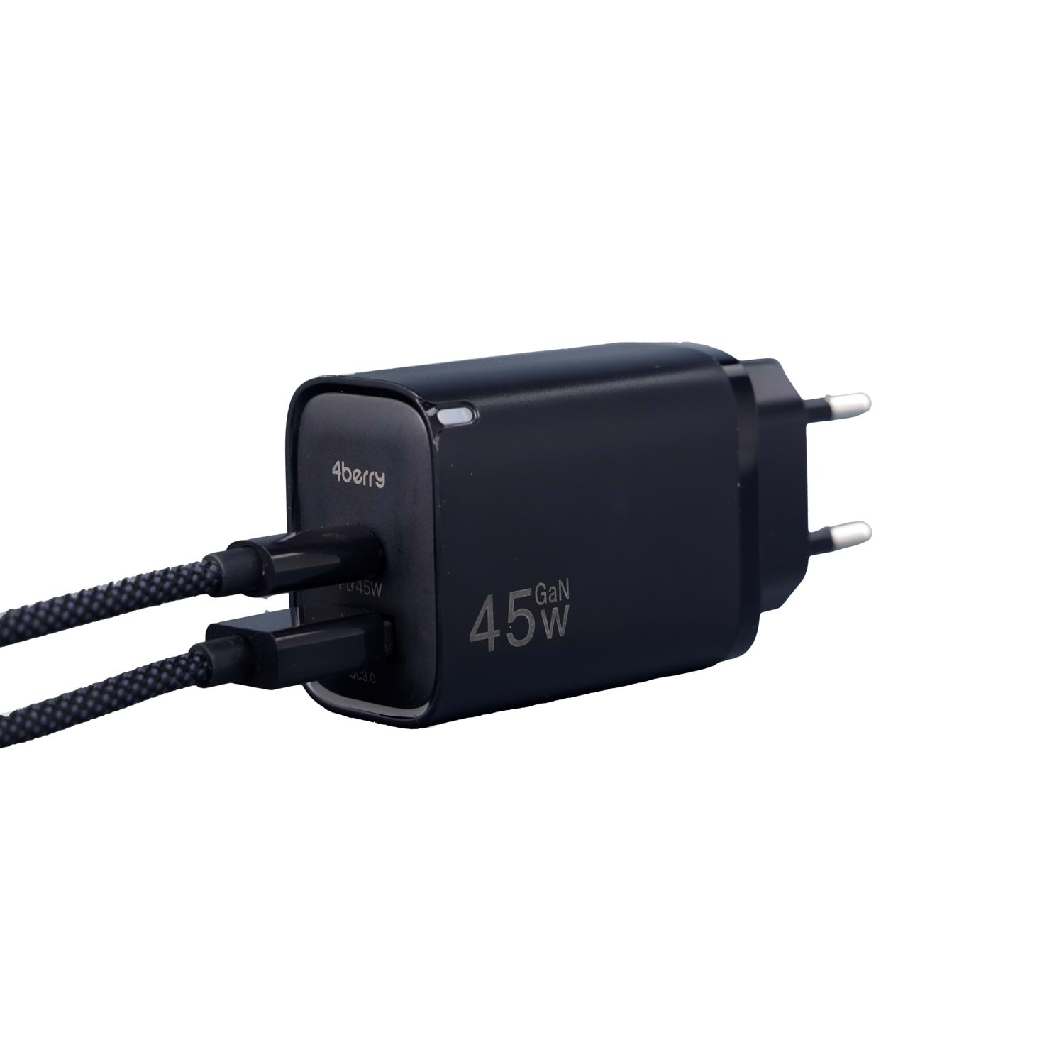 AD17 45W Siyah Süper Hızlı Şarj Adaptörü – Çift Port USB-A & USB-C, PD + QC3.0 Destekli