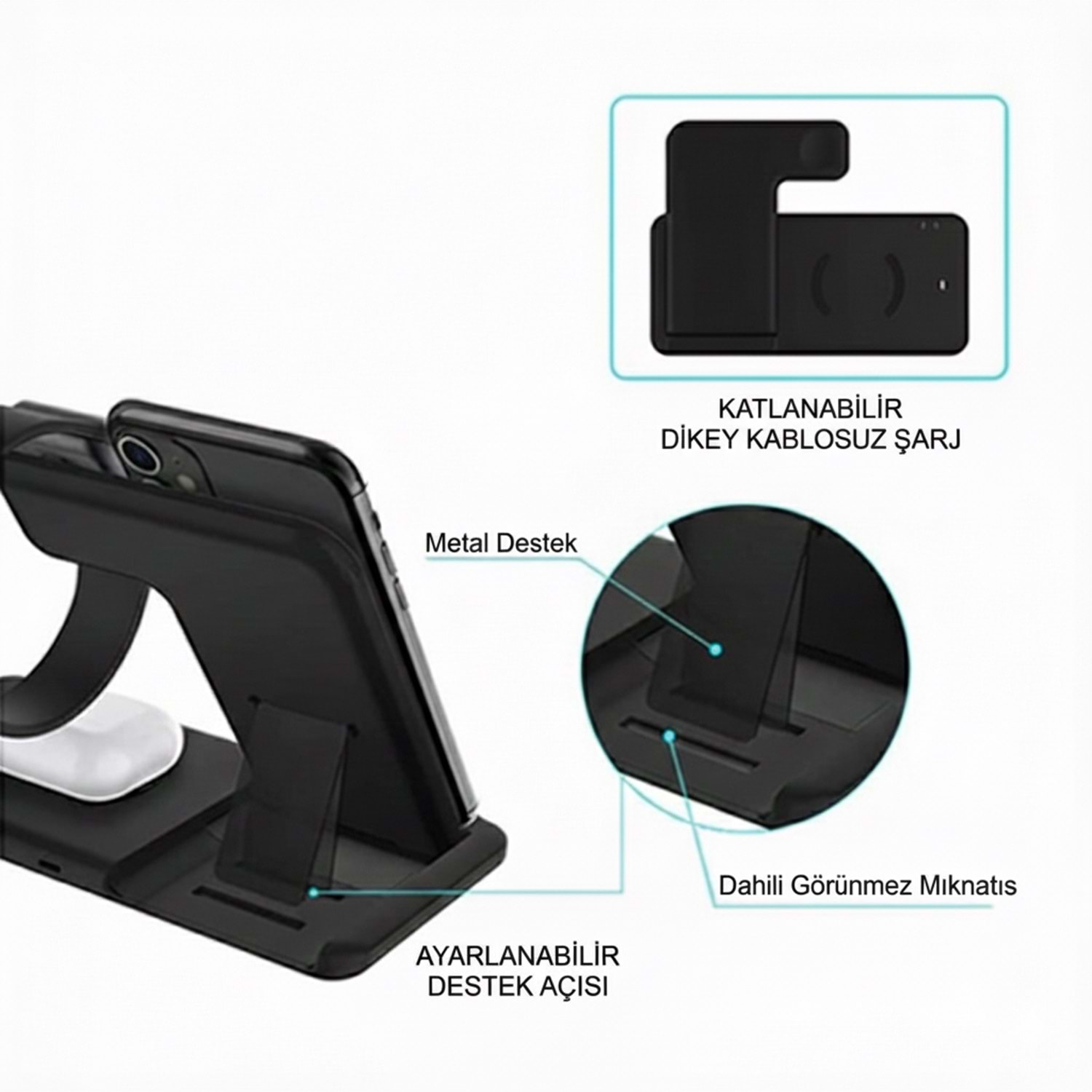 4 cihazı aynı anda şarj etme – telefon, saat, kulaklık ve diğer cihazlar için tek merkezli çözüm